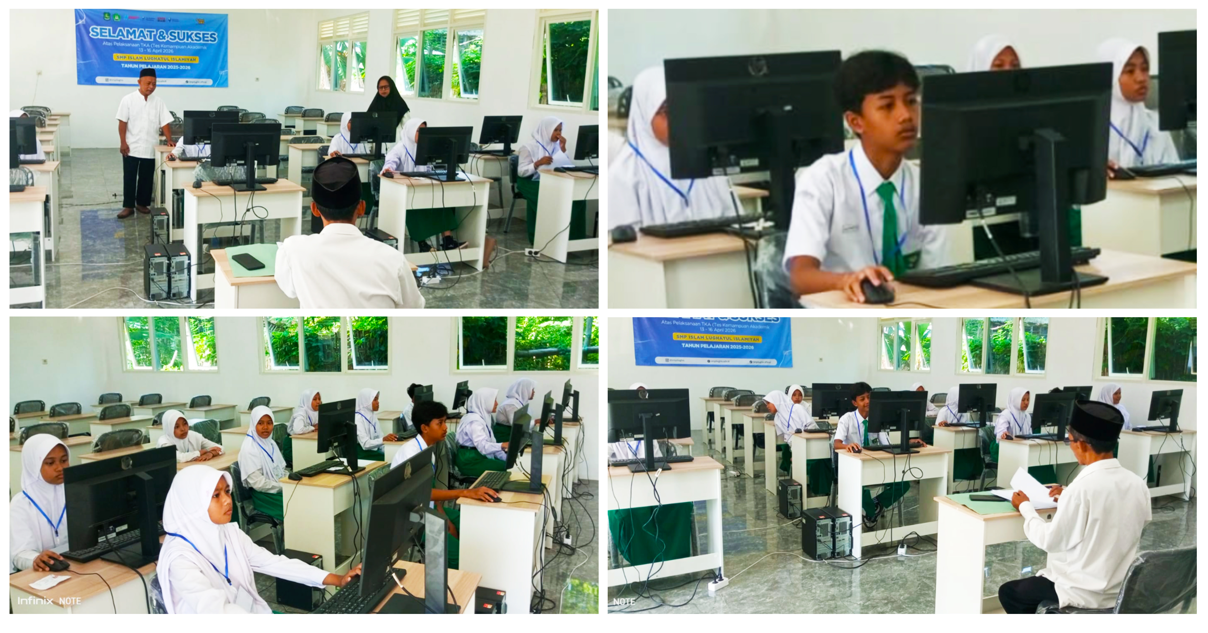 Selama pelaksanaan TKA, suasana ujian berlangsung kondusif. Di ruangan Laboratoium Komputer tampak beberapa ustadz dan ustadzah yang bertugas mengawasi jalannya TKA dengan sangat serius. "Kami telah mempersiapkan pelaksanaan TKA kali ini dengan sangat baik dan menjadwalkan Ibu Hasidah, S.Ag dan Bapak Hasan, S.Sos.I sebagai Rengawas Ruang, ujar Bapak Tahir, S.Pd.I selaku Panitia Proktor pelaksanaan TKA kali ini. Para siswa mengerjakan soal dengan sangat serius dan penuh tanggung jawab. Pengawas juga memastikan bahwa pelaksanaan berjalan sesuai prosedur yang telah ditetapkan.